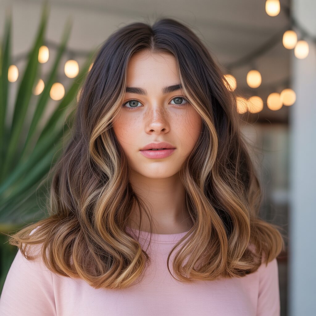 How it’s created: Brunette bases are lifted with delicate balayage or babylights in caramel tones, often finished with a gloss treatment for shine.