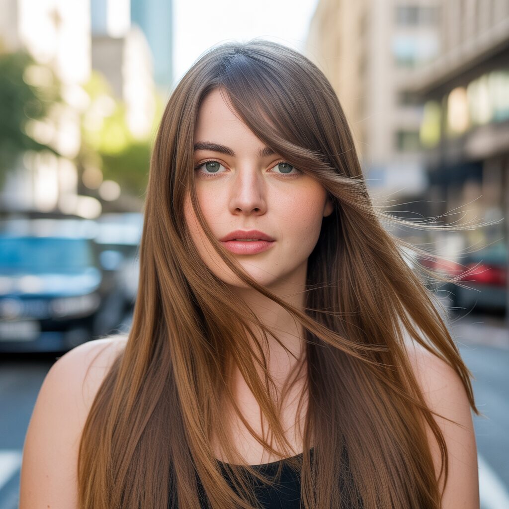 Long Hair with Side-Swept Bangs