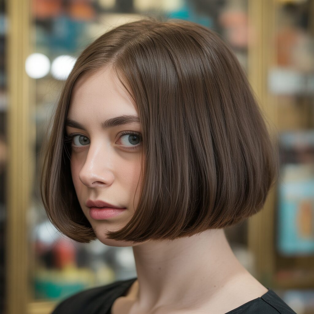 How it’s created: Hair is cut to chin or jaw length, often with a straight edge for a clean finish.