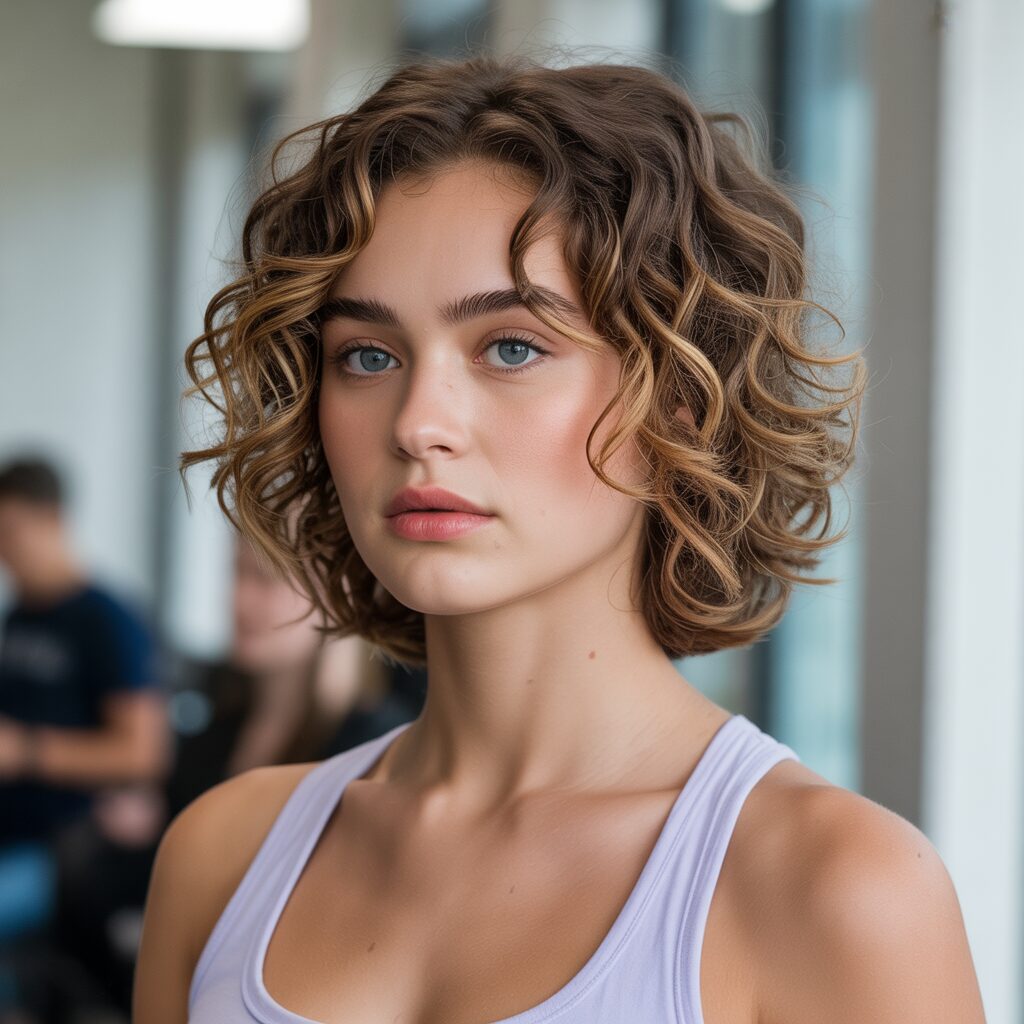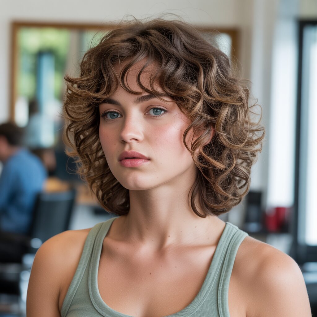 How it’s created: Hair is trimmed to shoulder or collarbone length, shaped with soft layers to define curls without thinning them further.