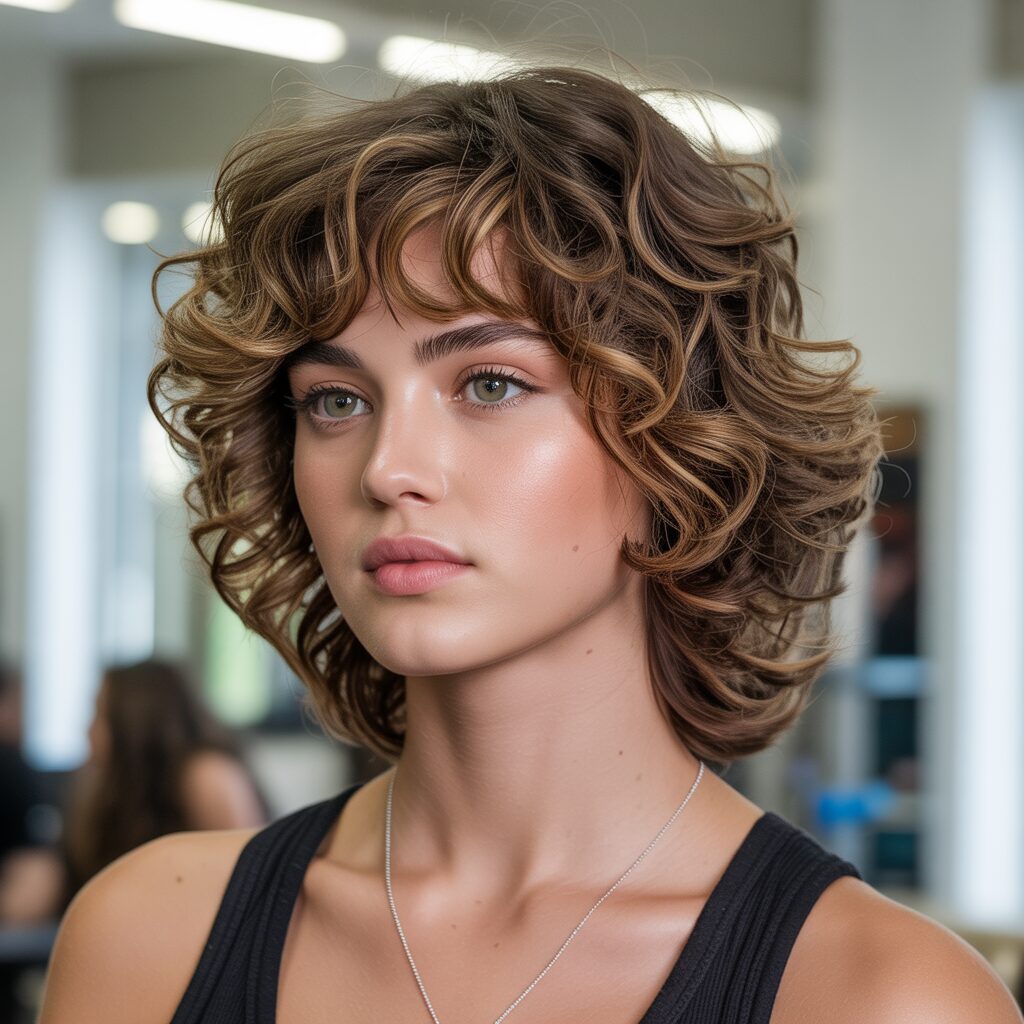 How it is different: Unlike smooth styles, the shag uses uneven layers that create texture, giving thin curls more lift and personality.