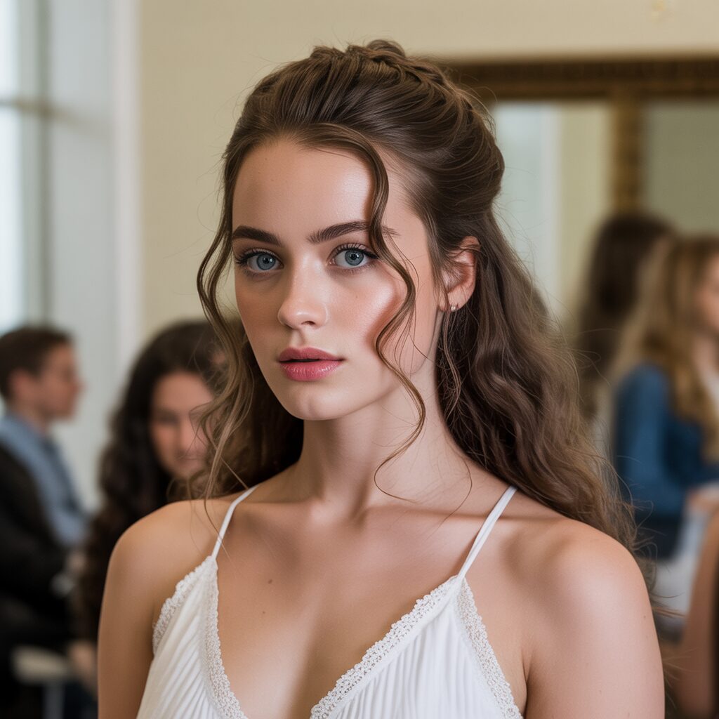 The half up half down hairstyle balances elegance with casual charm by pulling some hair away from the face while leaving the rest flowing freely. Unlike full updos, this style is less formal but still polished. It is inspired by European fashion and modern bridal hairstyles, making it suitable for various events.