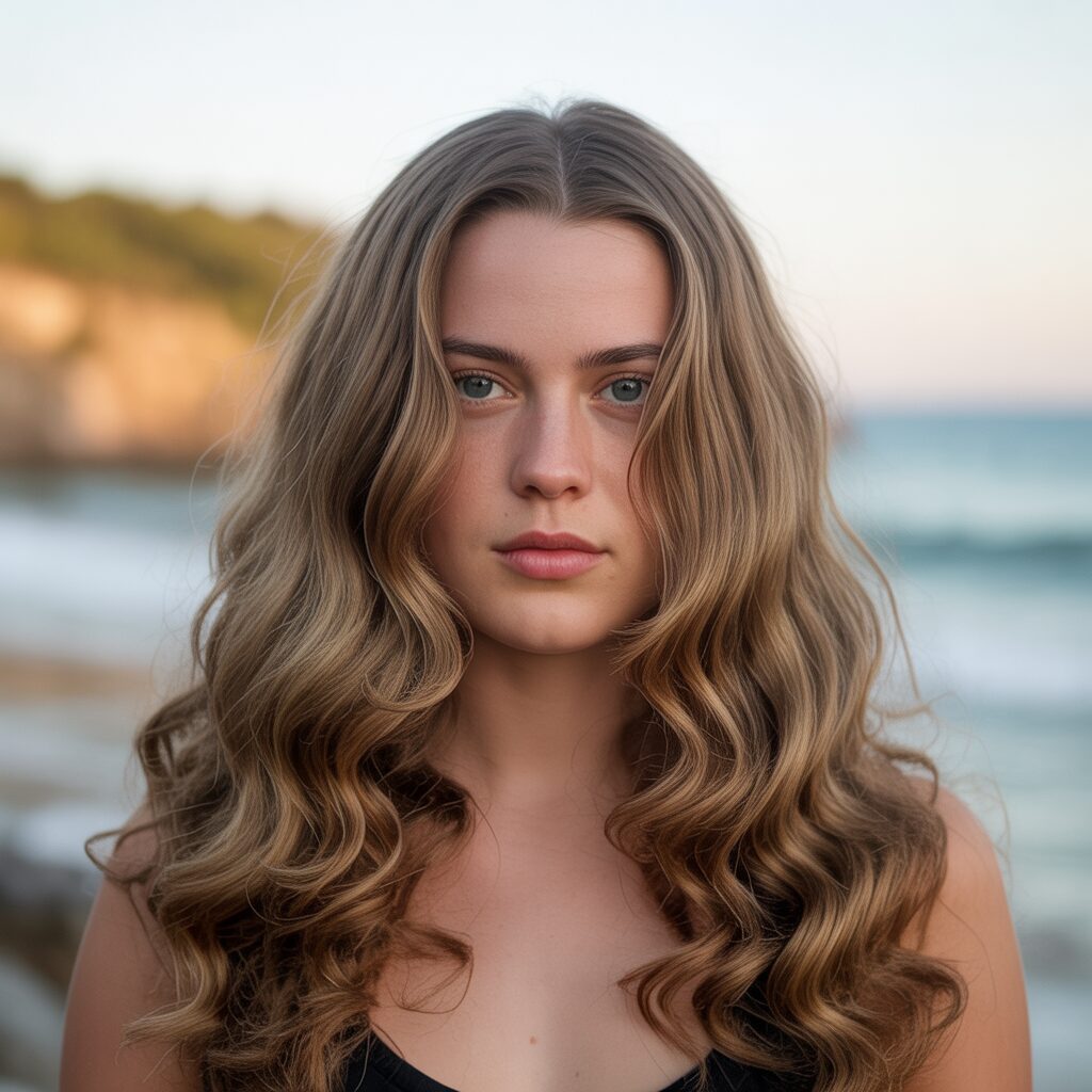 Long, loose waves are ideal for adding vertical lines to the hairstyle, which helps to elongate a round face. Unlike short curls or bouncy bob cuts, long waves offer flowing elegance that draws attention downward. This style is inspired by beach waves popularized in the 1970s and 2000s, combining casual charm with a flattering face-framing effect.