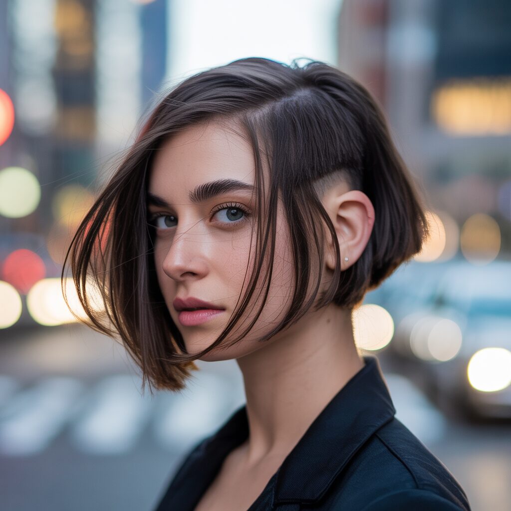 An asymmetrical bob, where one side is slightly longer than the other, helps create angles that counter roundness. Unlike traditional bobs that may emphasize symmetry, the asymmetry provides a striking, contemporary edge. This style is inspired by urban street fashion and high-fashion runways, merging bold structure with a chic, feminine touch.