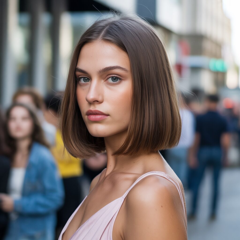 A blunt cut is one of the simplest yet most striking styles for straight hair. Unlike layered cuts, it maintains uniform length for a polished, contemporary look. Inspired by runway fashion and red-carpet appearances, blunt cuts emphasize shine and smoothness, creating a minimalist, sophisticated appearance.