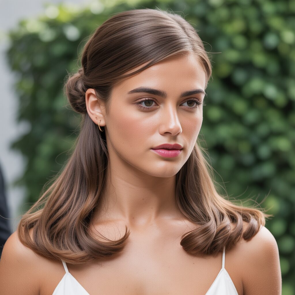 The half up half down style balances elegance and casual charm by pulling some hair back while leaving the rest straight and free-flowing. Unlike full updos, it keeps the hair relaxed yet structured. Inspired by European bridal styles and contemporary red-carpet looks, it is perfect for both formal events and everyday wear.