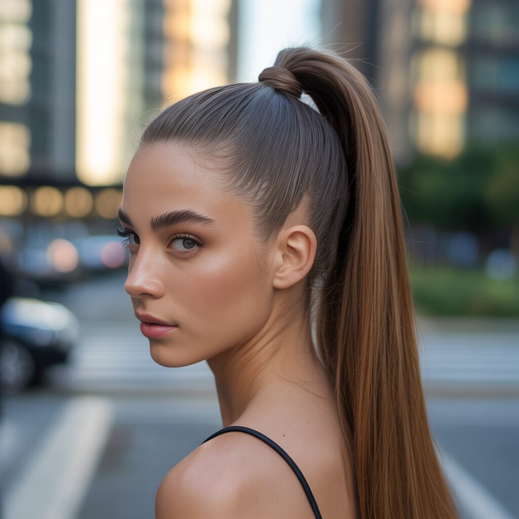 A sleek high ponytail accentuates straight hair’s natural smoothness while keeping it practical and stylish. Unlike loose hair, a high ponytail offers sophistication and highlights facial features. This style is inspired by celebrity fashion and runway trends, providing a timeless, elegant look.