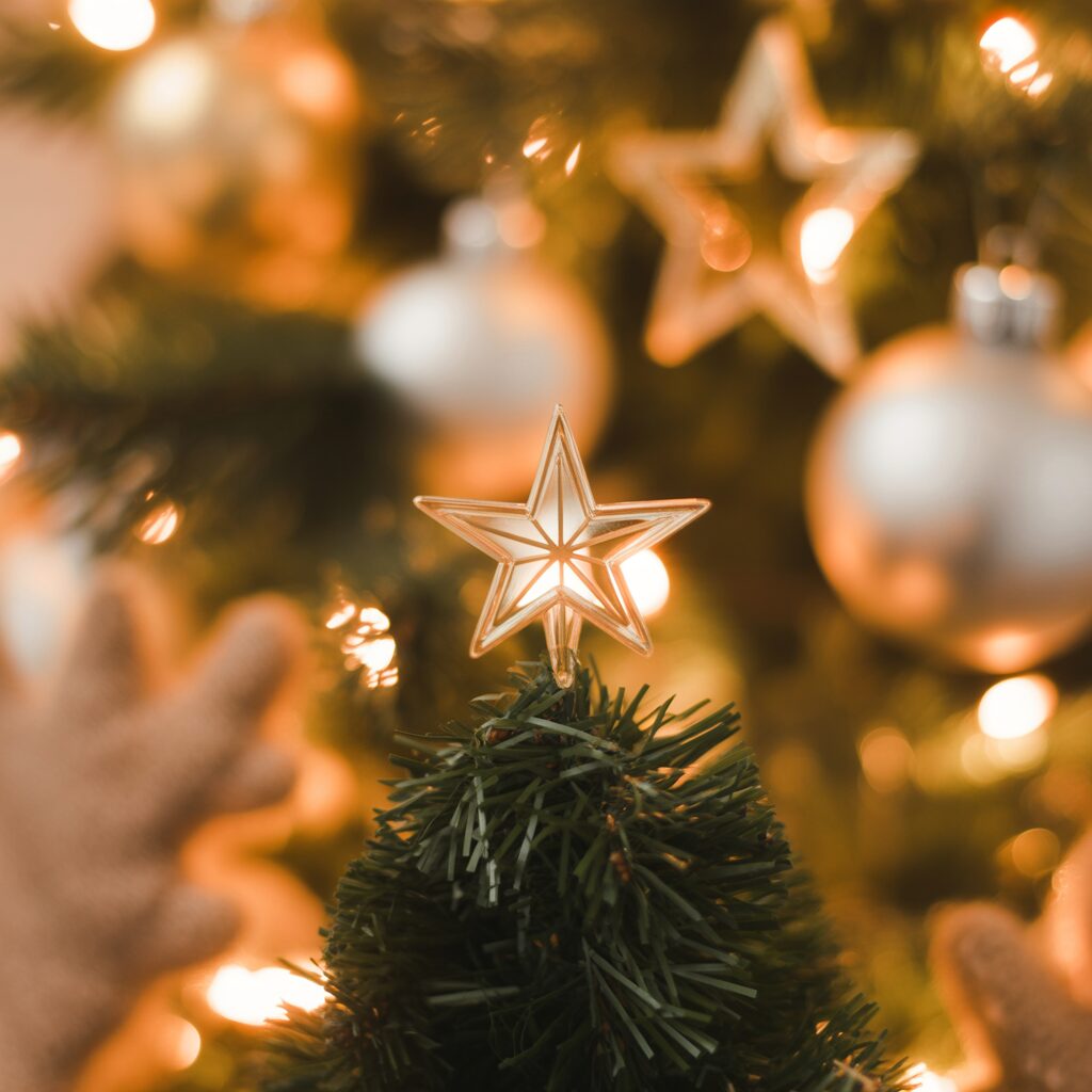 Choose a small star, bow, or angel for the top. A proportionate topper completes the design and draws the eye upward.