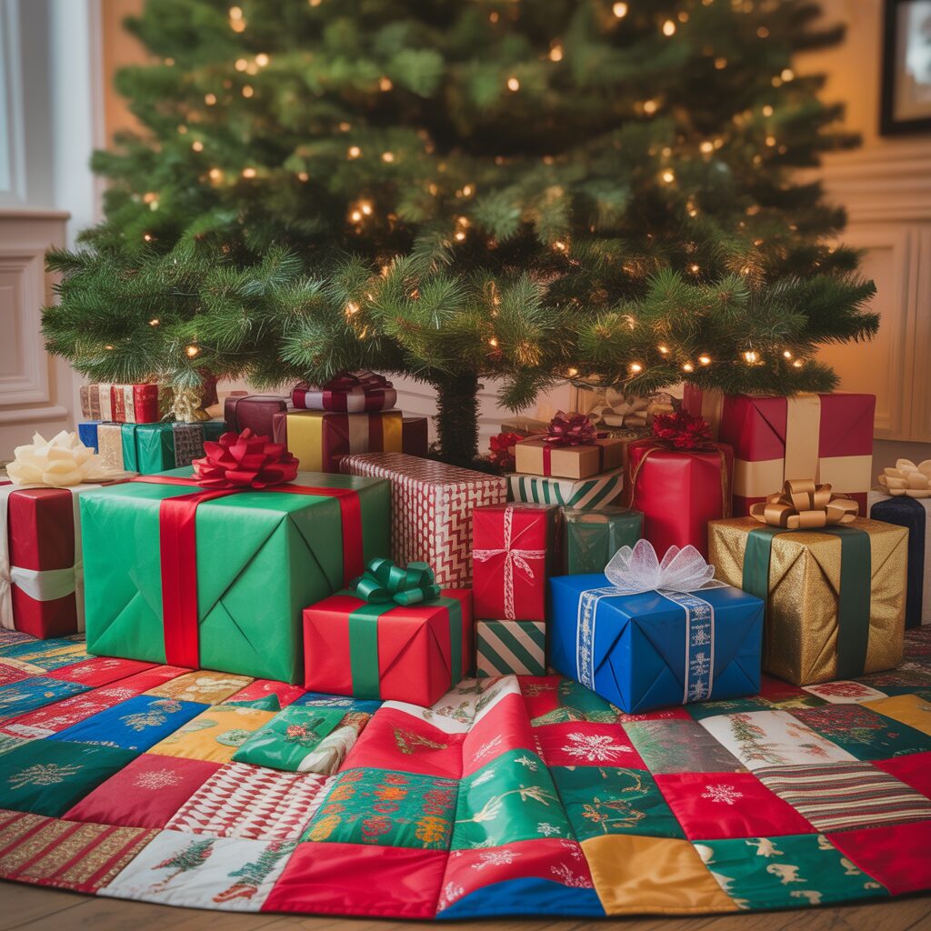 Use a colorful tree skirt or wrapped gift boxes under the tree. A bright base completes the multi-colored theme and adds extra visual appeal.