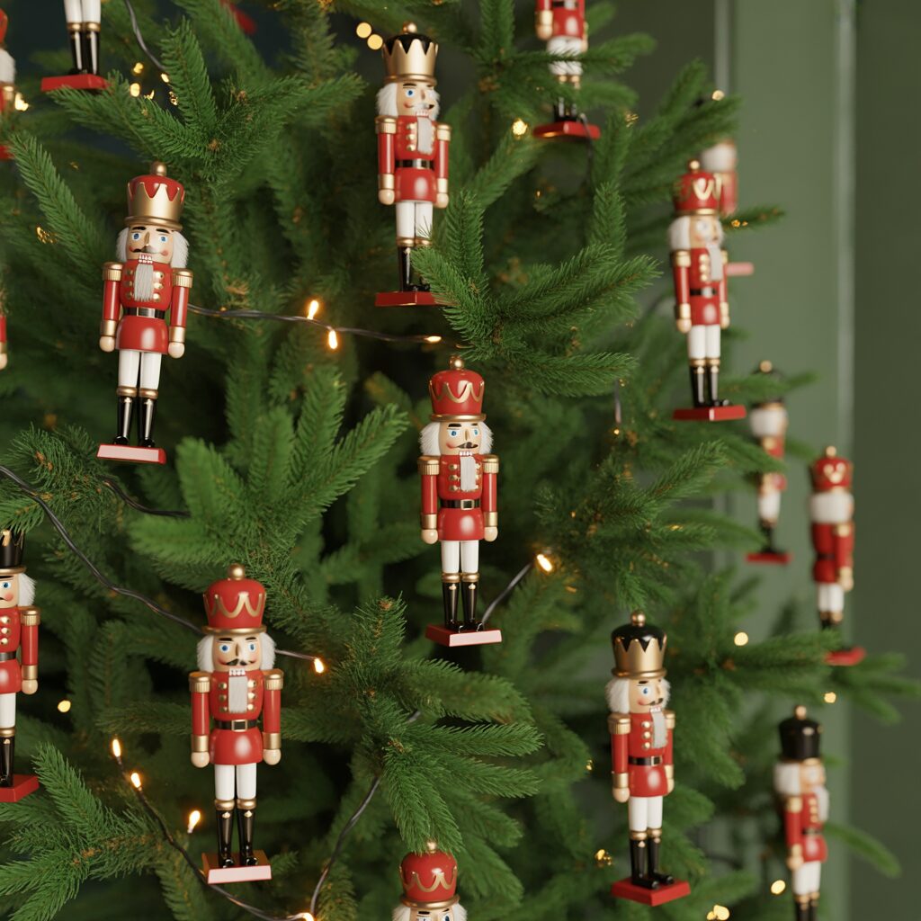 Use small Nutcracker figurines as ornaments. Placing them throughout the tree instantly establishes the theme and adds a playful touch.