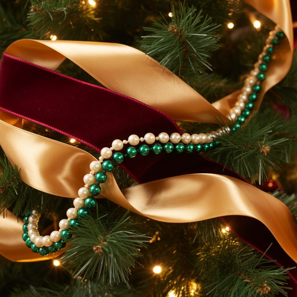 Drape satin or velvet ribbons and garlands in coordinating colors. These details add elegance, texture, and movement to the tree.