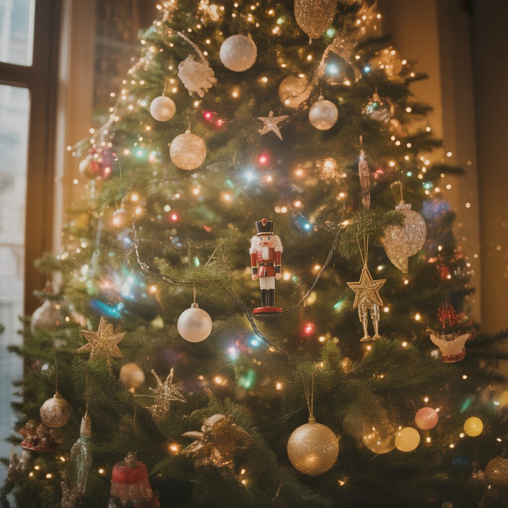 Use warm white or multicolored lights to highlight ornaments. Lights create a magical glow reminiscent of the Nutcracker story’s enchanting scenes.