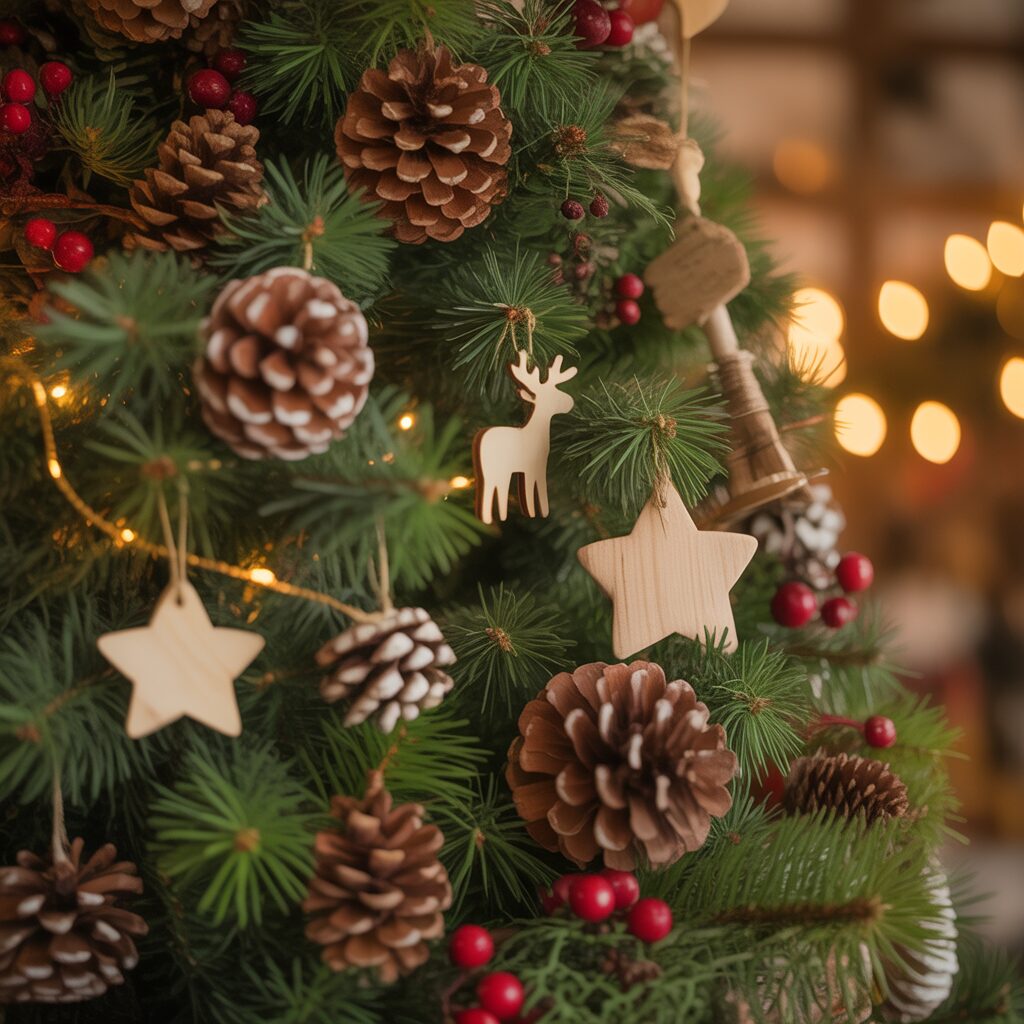 Incorporate pinecones, berries, and wooden ornaments. Natural elements highlight the tree’s organic texture and add rustic charm.