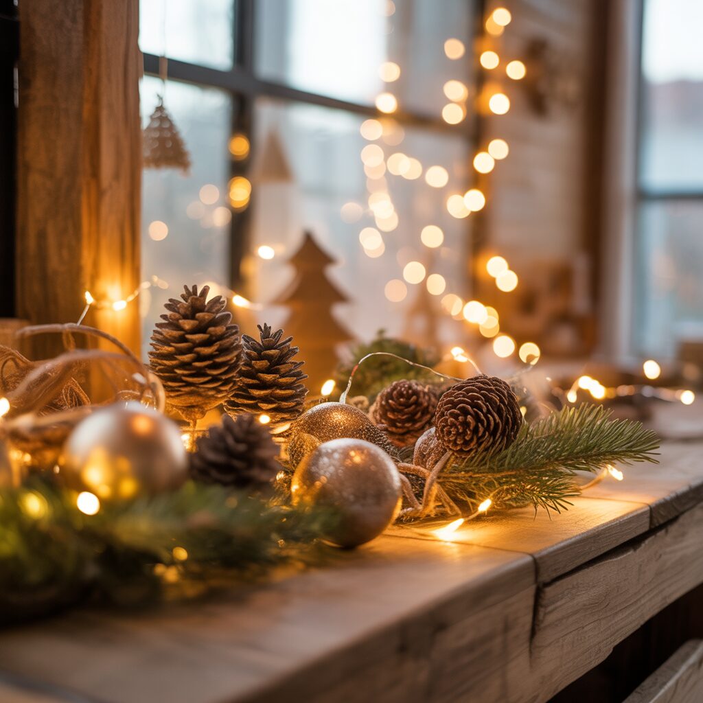 Incorporate warm white or amber lights. Soft lighting enhances the cozy feel and highlights natural ornaments beautifully.