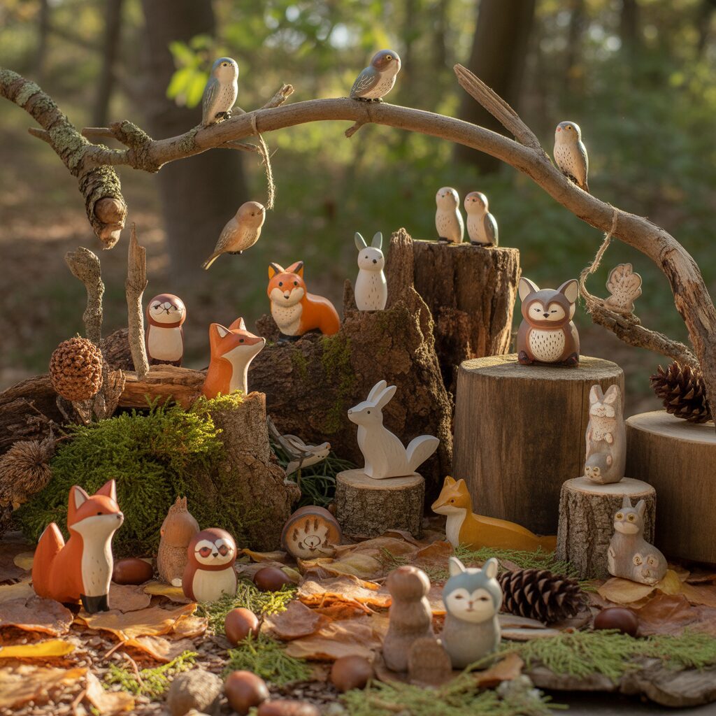 Include small animal figurines, birds, or woodland creatures. These playful touches reinforce the rustic, natural theme.