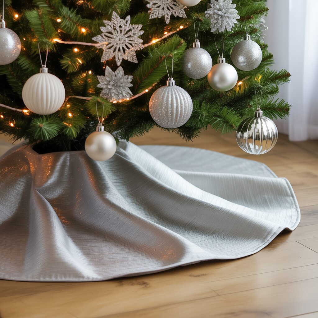 Use a silver or white tree skirt or decorative stand. A coordinated base ties the decorations together and completes the refined look.