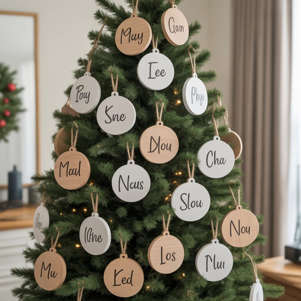 Add family names, initials, or handmade decorations. Personalized touches make the tree meaningful without taking up much room.