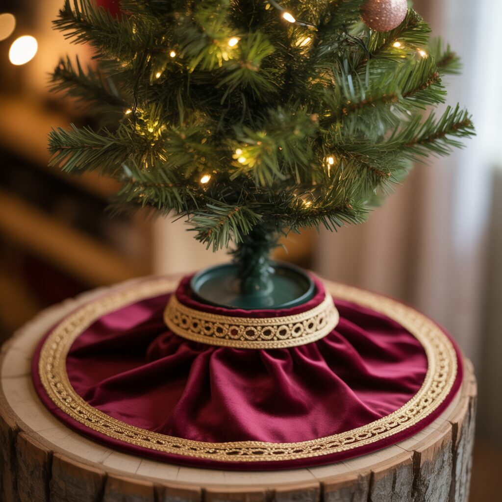 Use a small tree skirt or collar to hide the base and complete the look. This adds a polished touch and enhances the overall aesthetic.