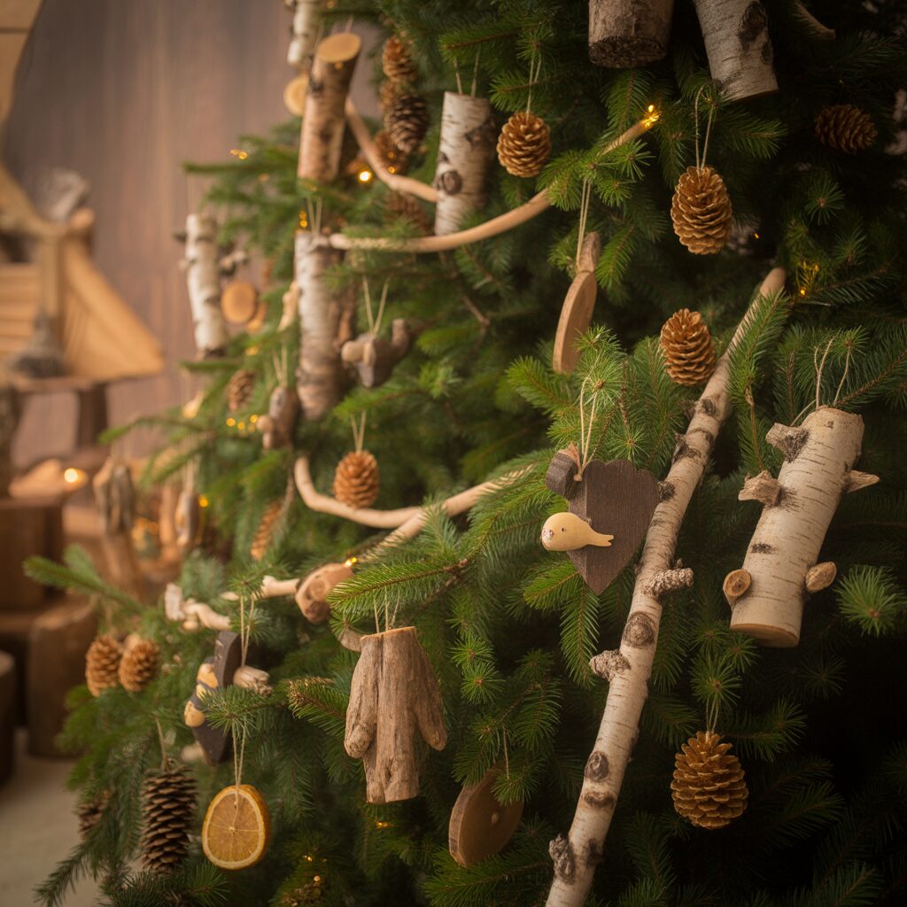 Incorporate pinecones, twigs, and wooden ornaments for a rustic woodland feel. This unique approach brings natural charm and warmth into your festive décor.