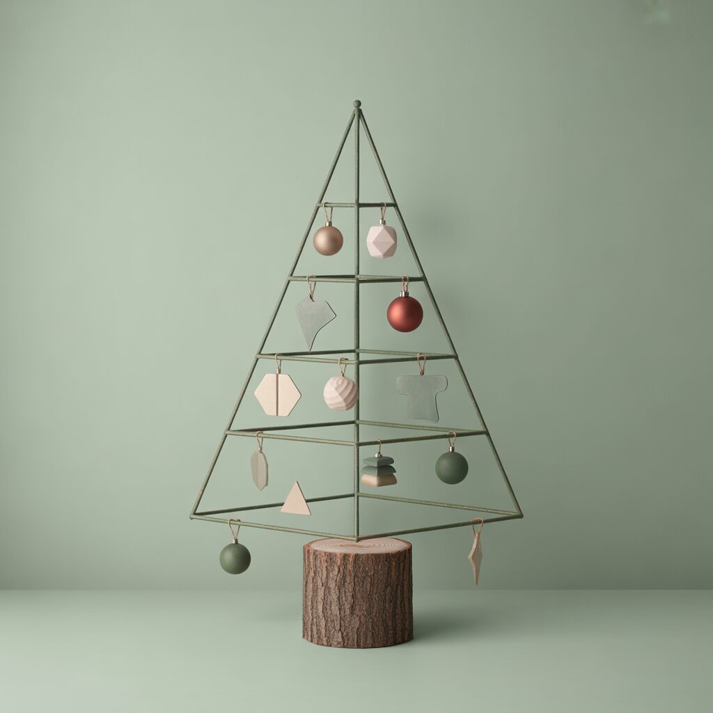 Use geometric ornaments, simple shapes, and a limited color palette for a modern, minimalist look. Clean lines and simplicity make this tree visually striking and contemporary.